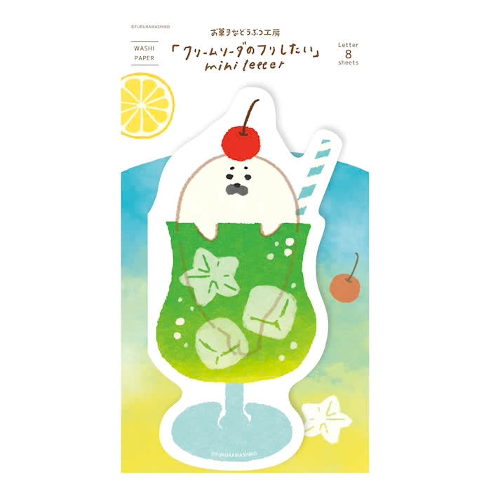 Furukawashiko Animal and Sweets Workshop Letter Paper Set - Green Seal Cream Soda LT774