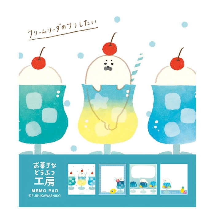 Furukawashiko Animal and Sweets Workshop Memo Pad - Seal Cream Soda LM416