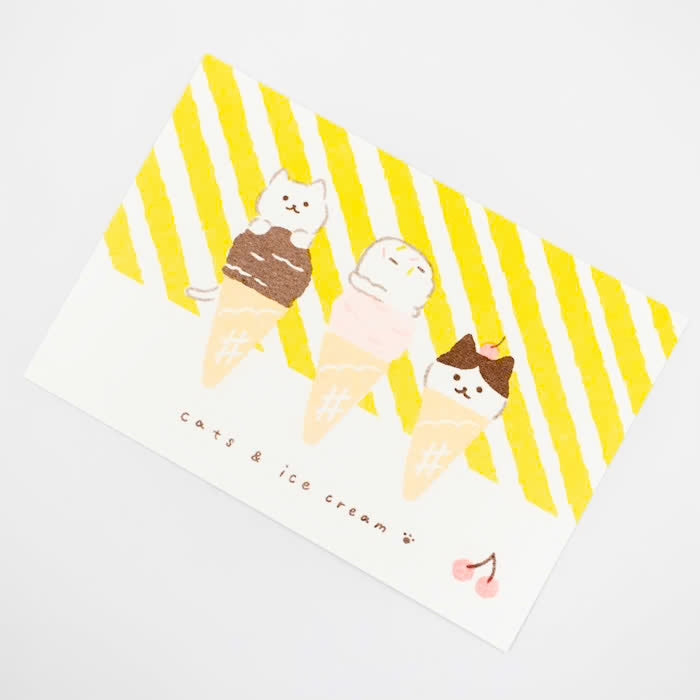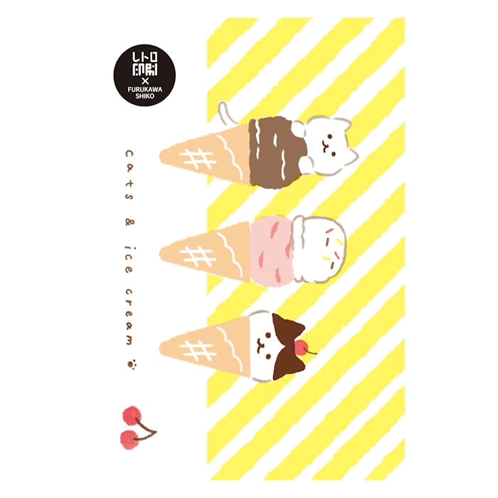 Furukawashiko Retro-Style Printed Postcard - Cats and Ice Cream HJ104
