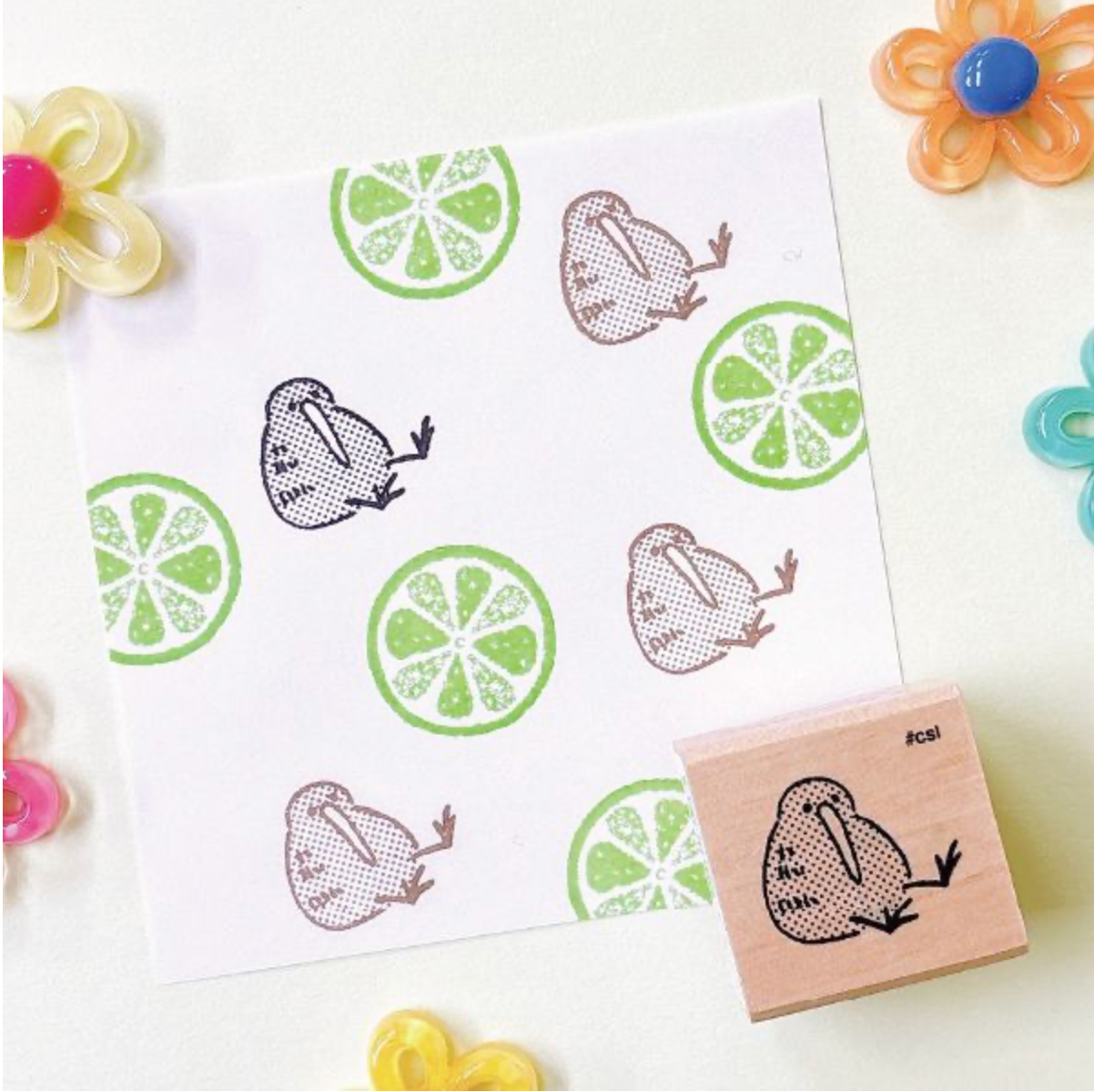 Rubber stamps with fruit designs on a white background