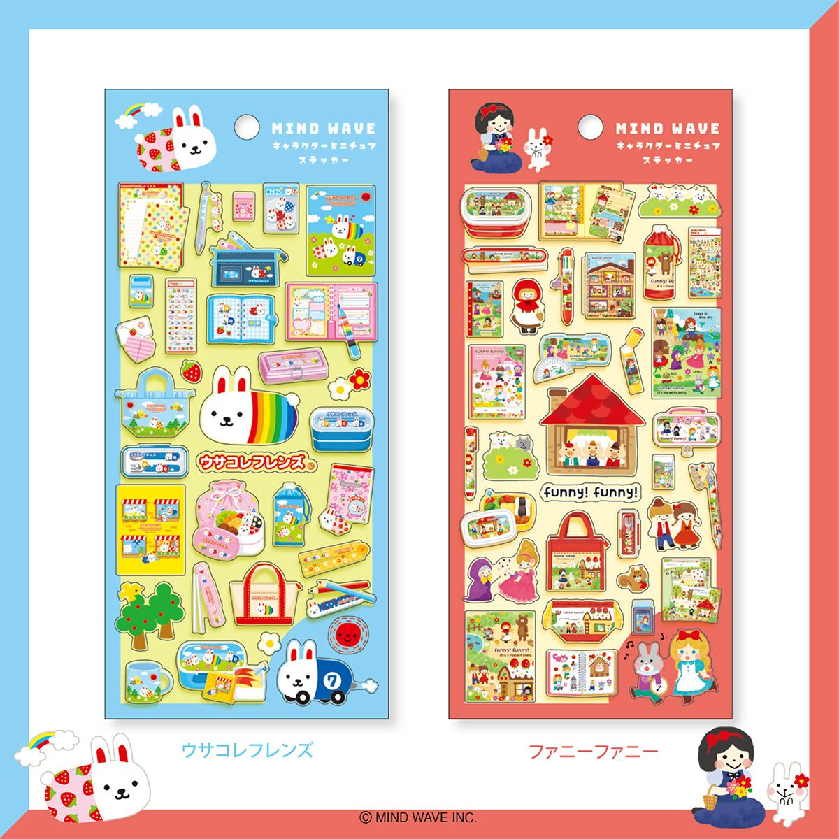 Collection of colorful sticker sheets from MIND WAVE on a wooden surface with stationery items.