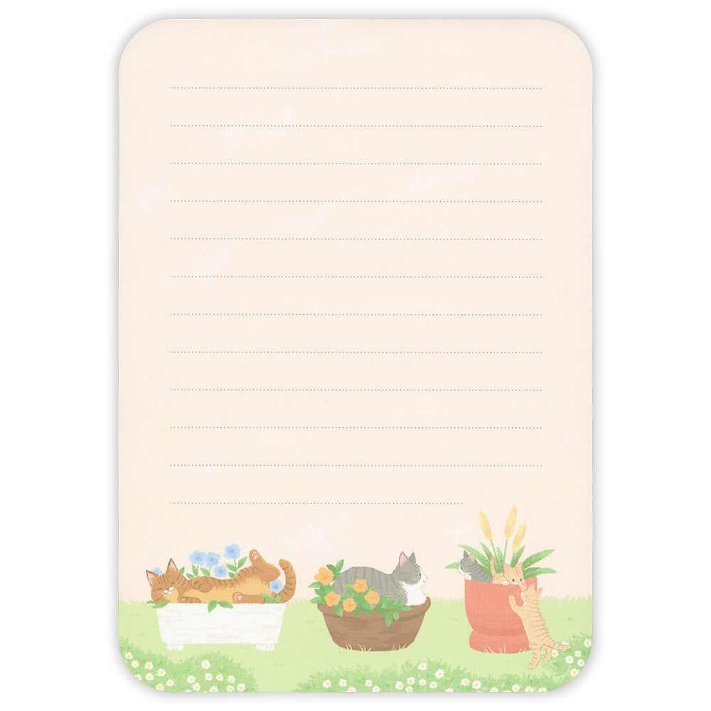 Notepad with cat-themed design on a white background