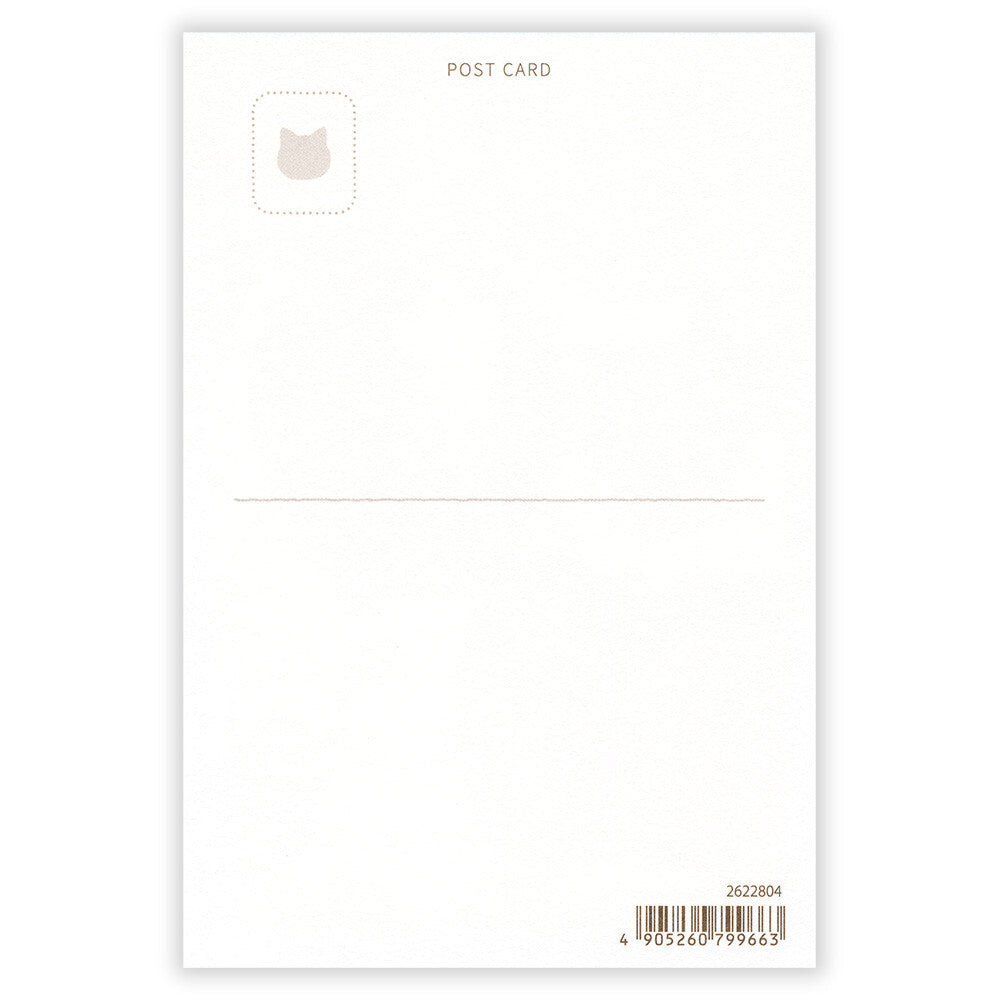 White postcard with a small logo in the top left corner on a white background
