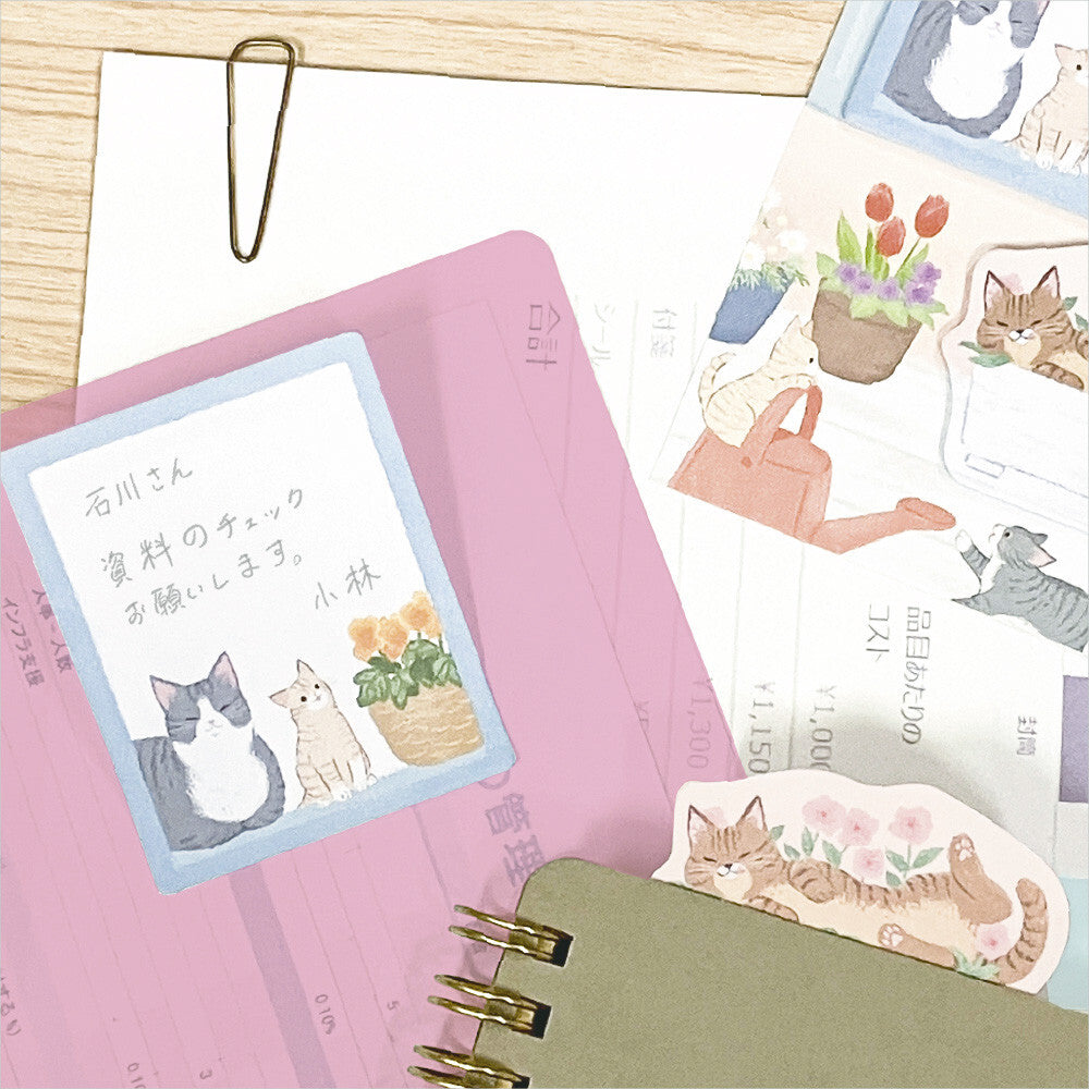 Two stationery items with cat illustrations on a white background