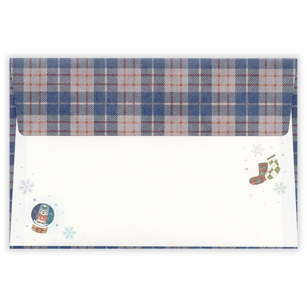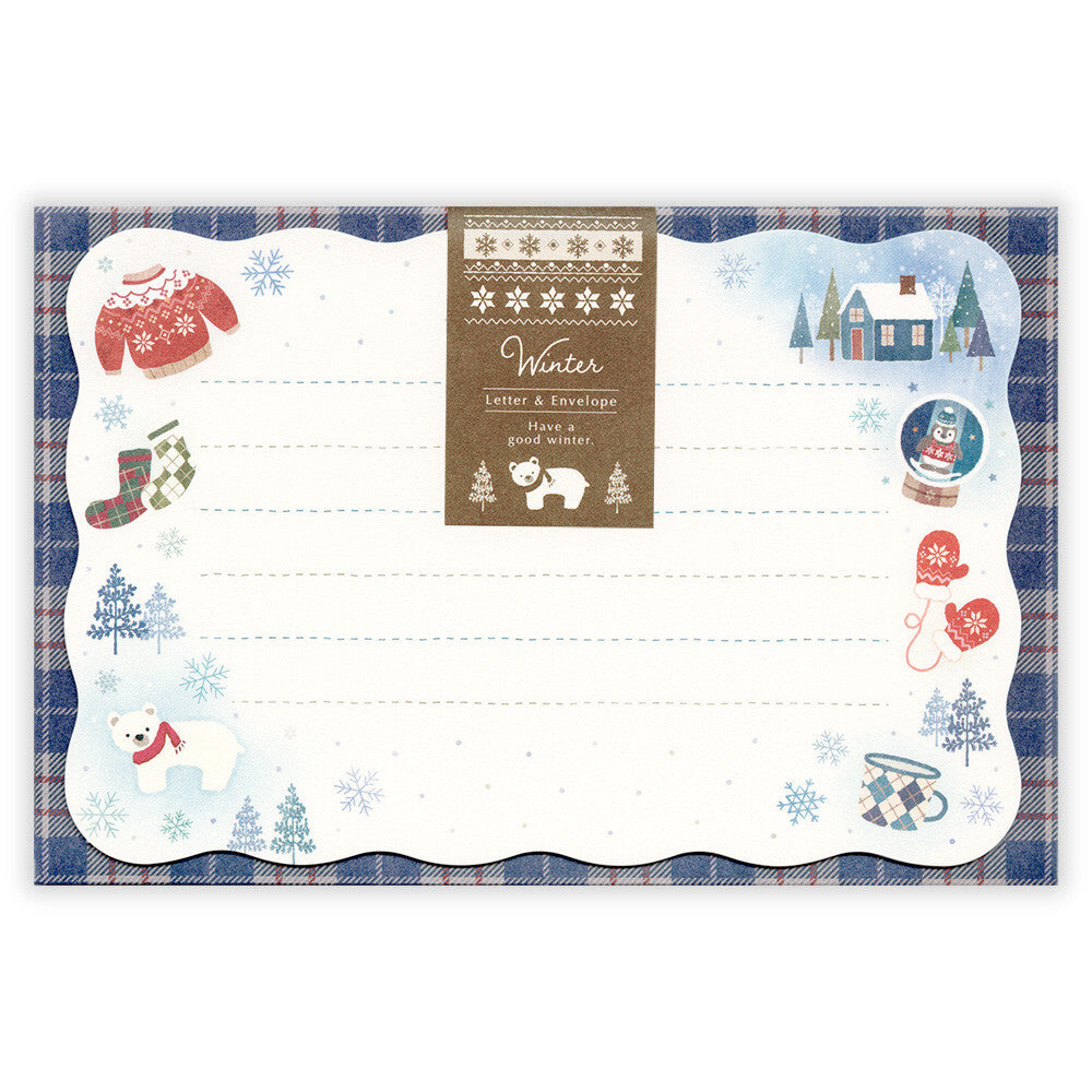 Winter-themed letter and envelope set with festive illustrations on a white background